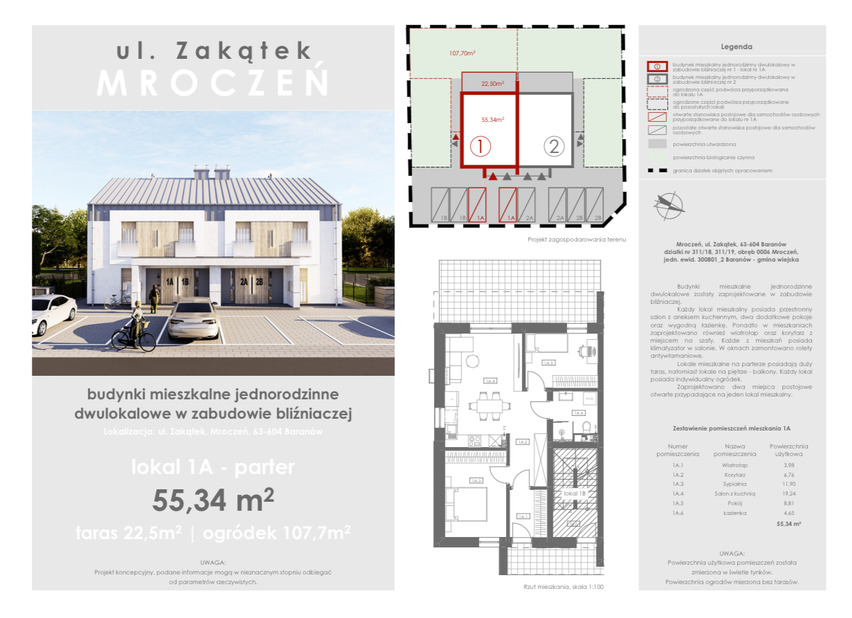 55,34 m² | taras 22,5 m² | ogródek 107,7 m²
